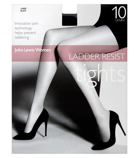 John Lewis L, Black, Women 10 Denier Ladder Resist Tights