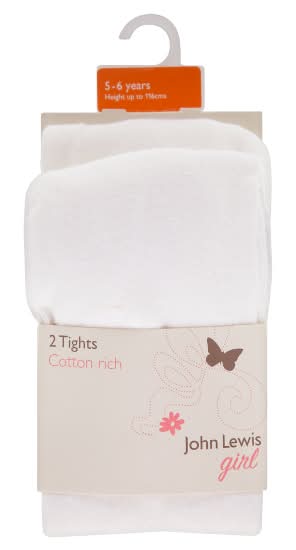 John Lewis 5-6 Years, White, Girl Cotton Rich Tights (2 pack)