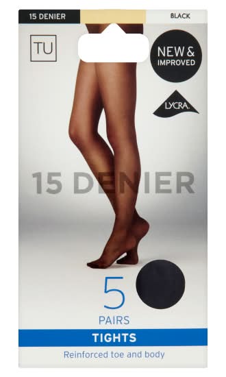 TU XL, Black, 15 Denier Tights (5 pack)