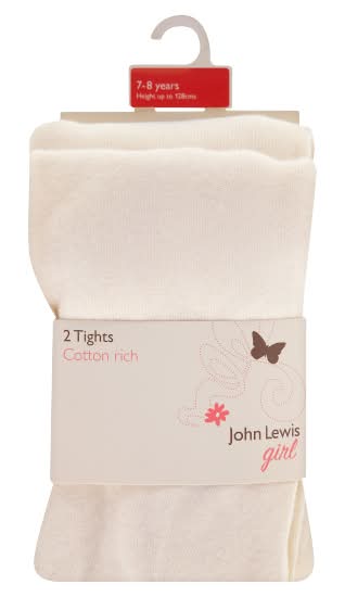 John Lewis 7-8 Years, Cream, Girl Cotton Rich Tights (2 pack)