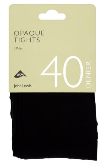 John Lewis L, Black, 40 Denier Opaque Tights (3 pack)