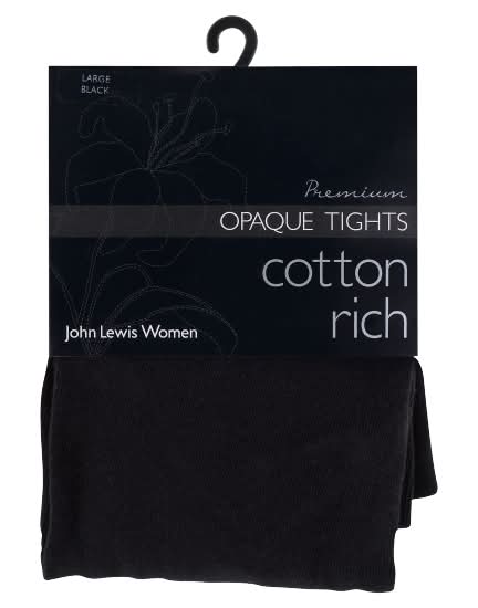 John Lewis L, Black, Premium Cotton Rich Opaque Tights