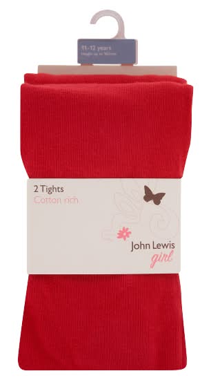 John Lewis 11-12 Years, Red, Girl Cotton Rich Tights (2 pack)