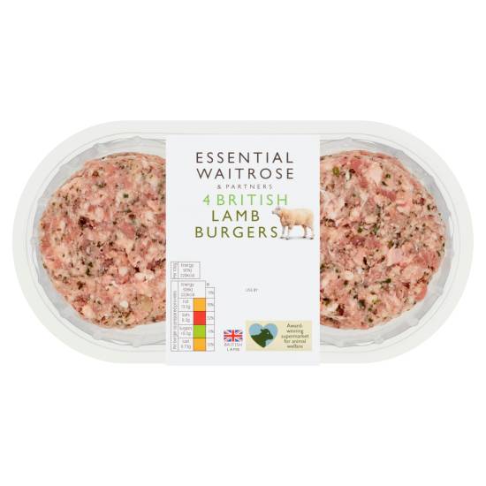 Essential Waitrose & Partners 4 British Lamb Burgers. (454g)