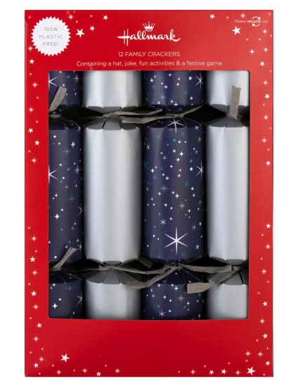 Hallmark 30cm x 5cm, Blue-Silver, Christmas Crackers (12 pack)