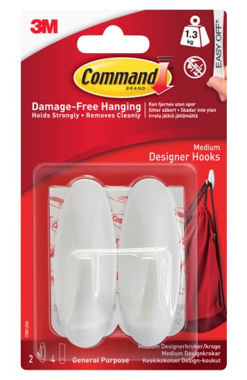 Command Medium, White, Damage Free Hanging Hooks (6 pack)