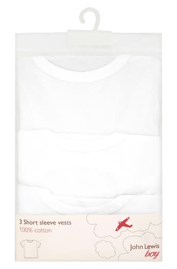 John Lewis White, Boys Cotton Short Sleeve Vests (3 pack)