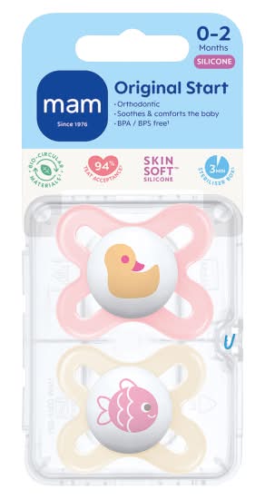 MAM 0-2 Months, Perfect Start Silicone Baby Soother (2 pack)