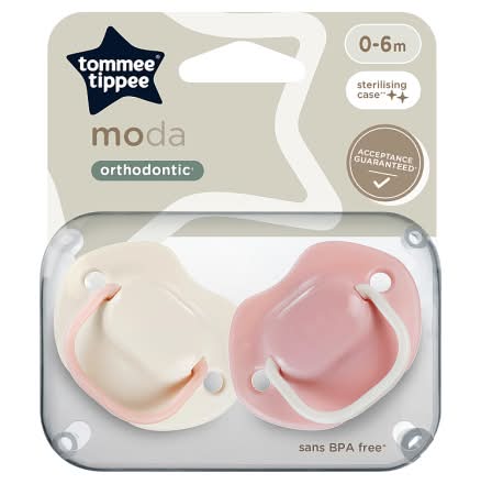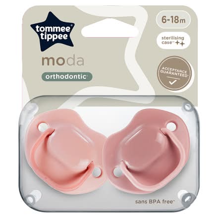 Tommee Tippee Moda Soothers With Steriliser Pod 6-18m (2 pack)