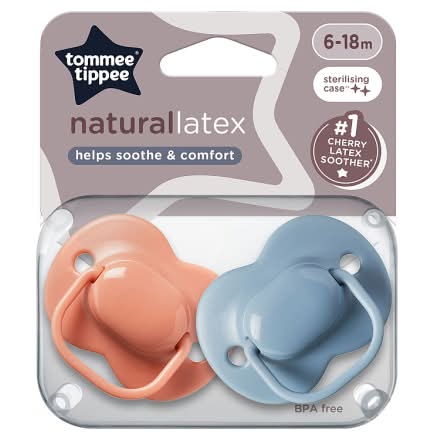 Tommee Tippee Brown-Blue, Natural Latex Soothers (2 pack)