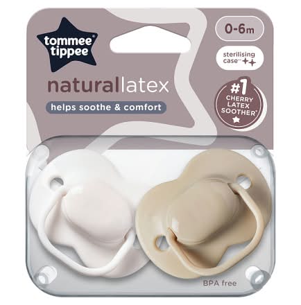Tommee Tippee White - Cream, Natural Latex Soothers 0 - 6m (2 pack)