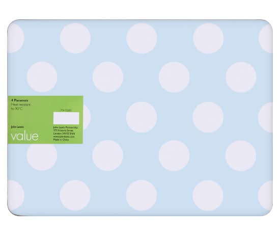 John Lewis Blue/White, Value Spot Placemats (4 pack)