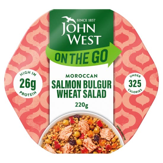 John West Wheat-Tomatoes-Carrots-Chickpeas-Red Peppers and, Salmon Bulgur Wheat Salad (220g)