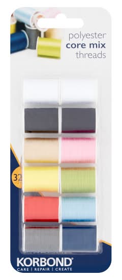 Korbond 32m, Assorted, Care & Repair Dark Mix Thread Selection (12 pack)