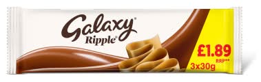 Galaxy Milk Chocolate, Ripple Snack Multipack Bars (3 x 90g)
