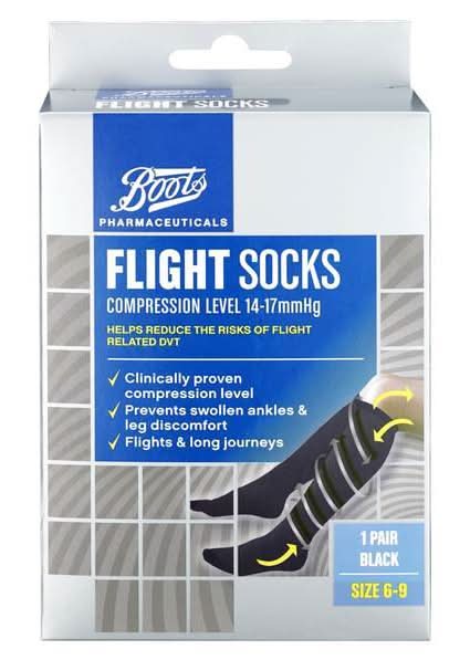 Boots 6-9, Black, Flight Socks Compression Level 14-17mmhg