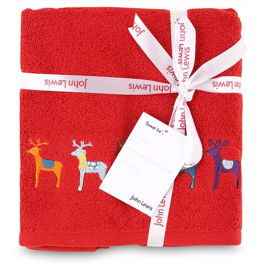 John Lewis Red, Mini Reindeer Hand Towels (2 pack)