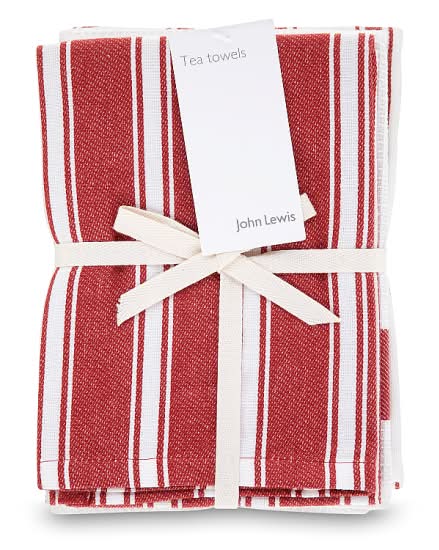 John Lewis Red/White, Tea Towels With Stripe Set (3 pack)