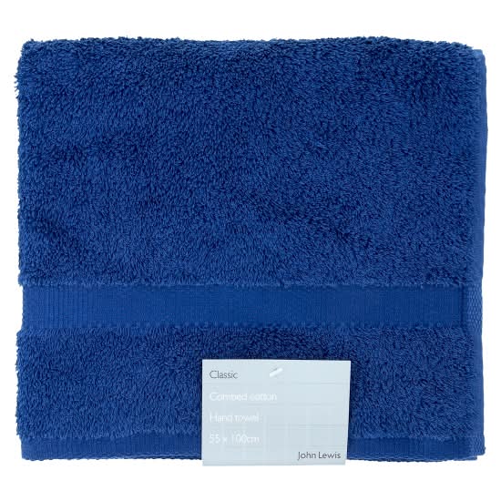 John Lewis 55x100 cm, Blue, Classic Combed Cotton Hand Towel