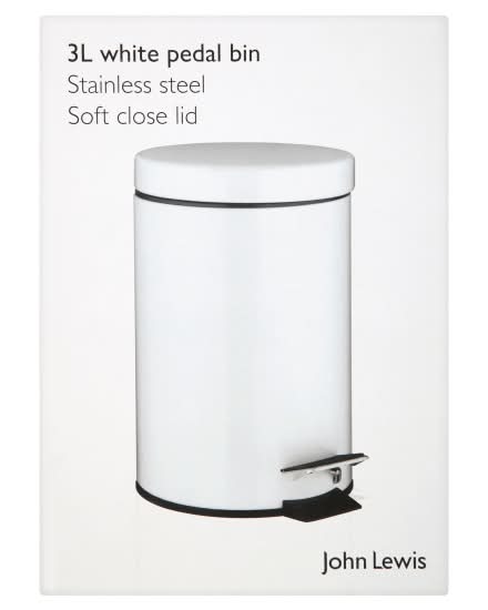 John Lewis White, Stainless Steel Pedal Bin With Soft Close Lid