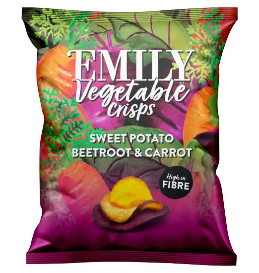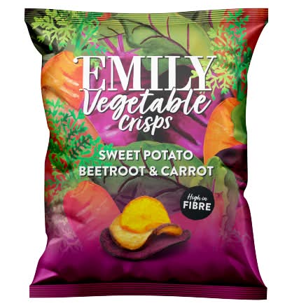 Emily Rainbow Roots Sweet Potato, Carrot & Beetroot Veg Crisps (100g)