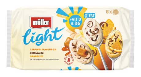Müller Vanilla - Orange - Caramel, Light Fat Free Yogurts With Chocolate Sprinkles (6 pack)