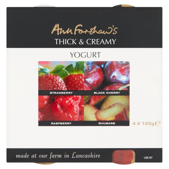 Ann Forshaw's Strawberry-Black Cherry-Raspberry-Rhubarb, Thick & Creamy Yogurt (4 x 125g)