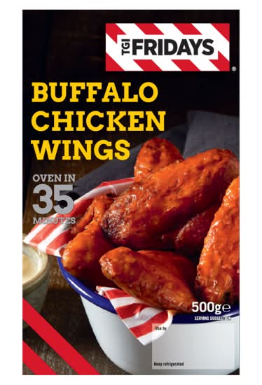 Directions for use: Oven cook - From Chilled Cooking appliances vary. These instructions are given as a guide. Please ensure that the product is piping hot throughout before serving. Do not re-heat. Remove all packaging and set sachet of sauce to one side for later use. Pre-heat oven to 200°C/400°F/Fan 180°C/Gas Mark 6. Remove meat from pouch and place onto a baking tray. Cook in the centre of the oven for 15 minutes. Remove from oven and gently separate before returning to the oven for a further 20 minutes. Remove from the oven and toss the wings in the Buffalo sauce to coat well. Suitable for Home Freezing Keep Refrigerated Storage recommendation: Chilled Keep refrigerated. Once opened keep refrigerated and consume within 24 hours. Suitable for home freezing. Freeze on day of purchase and use within 1 month. Defrost thoroughly in a refrigerator, once defrosted use on same day. Once thawed do not refreeze.