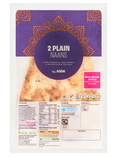Flame baked in a tandoor-style oven, rip and dip into your favourite curry No Artificial Colours, Flavours or Hydrogenated Fat Suitable for vegetarians • Asda, Leeds, LS11 5AD • Packaging: Reusable