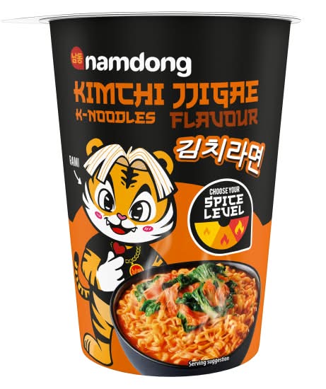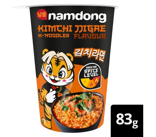 Bring all the Korean-inspired flavour with Namdong Kimchi Jjigae Noodle Pot. Fun fact: Jjigae means stew in Korean. Grab it! Spice it! Love it! Choose your spice level: enjoy a super spicy sensation by using the full chilli sachet, or ditch the chilli sachet and fall in love with the flavour without any heat. If you're feeling adventurous, use half the sachet for a little spice kick! Our kimchi flavour instant noodles are too easy to make. The taste? Absolutely incredible. The effort? Literally zero. The result? Daebak. 1. Peel back the lid halfway and add as much of the chilli mix as you can handle (or dare). 2. Pour in boiling water up to the fill line. 3. Give it a stir and let sit for 3 mins - lid down, no peeking! Stir again and you're good to go. Feeling fancy? Throw it in a bowl and garnish like a pro. At Namdong, we're all about K-noodles done your way. We've kept all the Korean-inspired flavours, but you get to personalise your spice level to exactly how you like it. Whether you love to spice it up, prefer a gentle kick or something in between, we've got you covered. *Made to vegan standards; check the ingredients section for allergens.