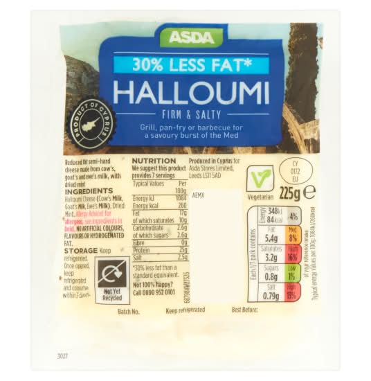 ASDA 30% Less Fat Halloumi Cheese (225g)