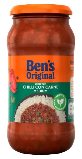 Ben's Original Medium Chilli Con Carne sauce combines carefully selected tomatoes, with pepper, adzuki beans and a combination of herbs and spices, to create a mild chilli flavour - perfect for a Mexican-style dinner at home. This sauce jar serves four and helps you whip up a wholesome and tasty meal that can be enjoyed any day of the week. It’s suitable for vegetarians and contains no artificial colours, flavours, or preservatives. Simply add to minced beef and chopped peppers, heat through, and serve with rice for a meal the whole family will love! When you need a quick and delicious meal, look no further than Ben's Original Medium Chilli Con Carne Sauce. It’s a classic for a reason – a simple yet satisfying way to elevate your dishes, perfect for a speedy family supper or a convenient office lunch. Explore the Ben's Original range of store-cupboard-ready sauces today, and experience the excitement of great-tasting flavours, all in the comfort of your home! When you're craving a tasty, feel-good meal, Ben's Original has you sorted. • Mars Food UK., Gb Freepost Mars Food UK. • Packaging: Reusable