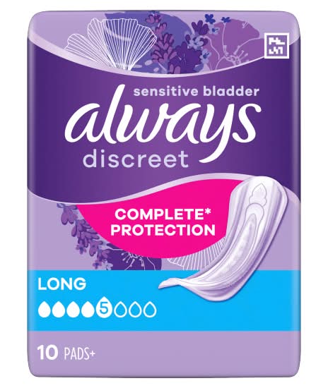 Always Discreet Incontinence Pads Long offer you complete* protection you can barely feel. Each pad is designed to offer you trusted protection from leaks, odour control, instant-dryness, a soft & gentle feel on skin, and a discreet fit. If sneezing or laughing causes bladder leaks, you can feel confident with the discreet and reliable protection offered by Always Discreet Pads. Also useful as maternity pads for postpartum incontinence. • Procter & Gamble UK, Weybridge, Surrey, KT13 0XP • Packaging: Reusable