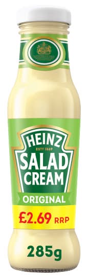Salad Cream.Deliciously Zingy No Artificial Colours, Flavours or Preservatives Suitable for Vegetarians Kosher • H.J. Heinz Foods UK Ltd. / H.J. Heinz Company (Ireland) Ltd., H.J. Heinz Foods UK Ltd., London, SE1 9SG. • Packaging: Reusable