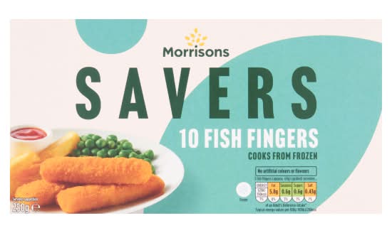 Ingredients: Minced Alaska Pollock (Fish) (58%), Wheat Flour (Wheat Flour, Calcium Carbonate, Iron, Niacin, Thiamin), Rapeseed Oil, Water, Yeast, Salt, Colours (Paprika Extract, Curcumin), Turmeric Contains: Fish, Wheat