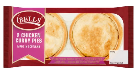 Specially chosen pieces of succulent chicken in a heavenly curry sauce... Bells one and only chicken curry pie Bells Food Group Ltd, Hawthorn Bakery, Shotts, ML7 5BD, Scotland.
