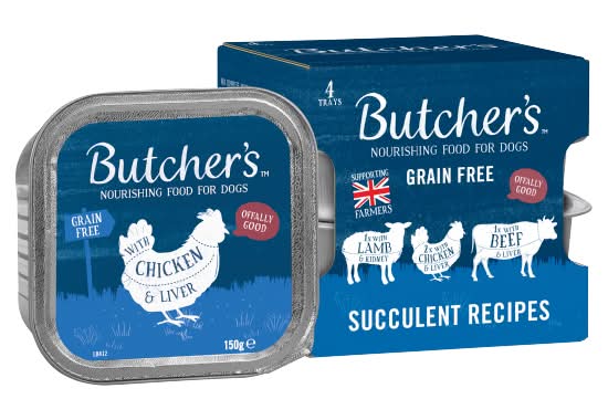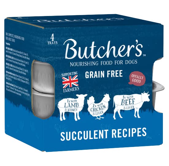 Butcher's Beef & Liver-Lamb & Kidney-Chicken & Liver, Grain Free Succulent Recipes Wet Dog Food (4 x 150g)