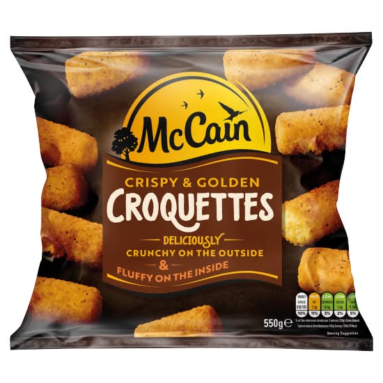 100% Mashed potato in a crunchy breadcrumb and black pepper coating Deliciously Crispy & Golden Crunchy on the outside, fluffy on the inside Prepared with sunflower oil McCain Foods (GB) Ltd, Havers Hill, Scarborough, YO11 3BS.