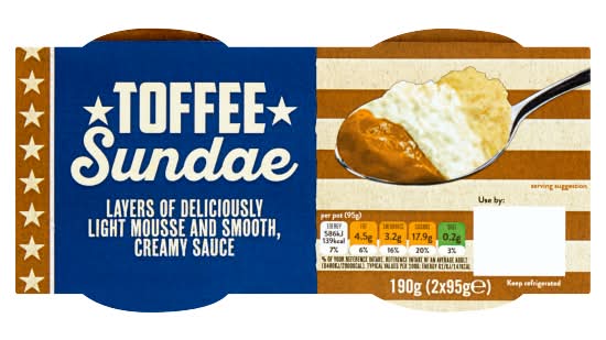 Toffee flavour custard topped with a vanilla flavour mousse and a toffee flavour mousse.Layers of deliciously light mousse and smooth, creamy sauce Flavour: Toffee
