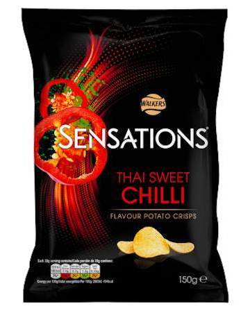 " Discover the extraordinary flavour of Sensations crisps, made with specially selected potatoes and thicker cut for a satisfying crunch Sensations Thai Sweet Chilli Crisps combine a subtly sweet and spicy flavour with fragrant herbs and a delicate kick to finish Perfect for sharing with friends Or serve with Sensations Streetmix or Peanuts for the perfect party snack platter Suitable for vegetarians Bag for sharing, Specially selected potato varieties, Thicker cut for a satisfying crunch, No artificial colours or preservatives, No MSG, Suitable for vegetarians"