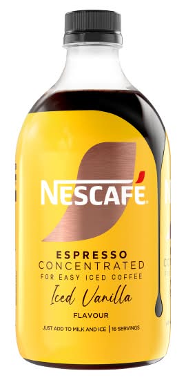 Nescafé Espresso Concentrated is the ultimate Iced coffee hack. It can be mixed with liquid of your choice to create a delicious Iced coffee in seconds. Our Espresso Concentrated range is convenient, easy to use and best of all, always taste great. It’s café quality coffee at your fingertips, from Iced lattes to black americanos to an array of new coffee experiences. No expensive equipment or intricate techniques are required to make a barista-style Iced coffee at home. Our range includes Classic Unsweetened, Caramel or Vanilla flavour; mix with milk, plant-based milk or tonic water to personalise your Iced coffee in seconds. Craft your perfect Iced latte in 3 simple steps: 1. Pour 150 ml of cold milk into a glass 2. Shake bottle well, add 1 shot (30 ml to the glass) 3. Stir, add ice & enjoy • Flavour: Iced vanilla • Nestlé UK Ltd, PO Box 207, York, YO91 1WS • Packaging: Reusable