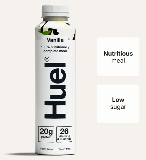 This isn't just a protein drink. This is the most convenient meal you'll ever have. Huel is perfect for when you're short on time - just shake, sip and enjoy. Formulated by nutritionists, each bottle is a 100% nutritionally complete meal, packed with: - 26 essential vitamins & minerals - 20g protein - 6g fibre - Low sugar - Gluten-free • Flavour: Vanilla • Huel Ltd, Tring, HP23 4RN • Packaging: Reusable