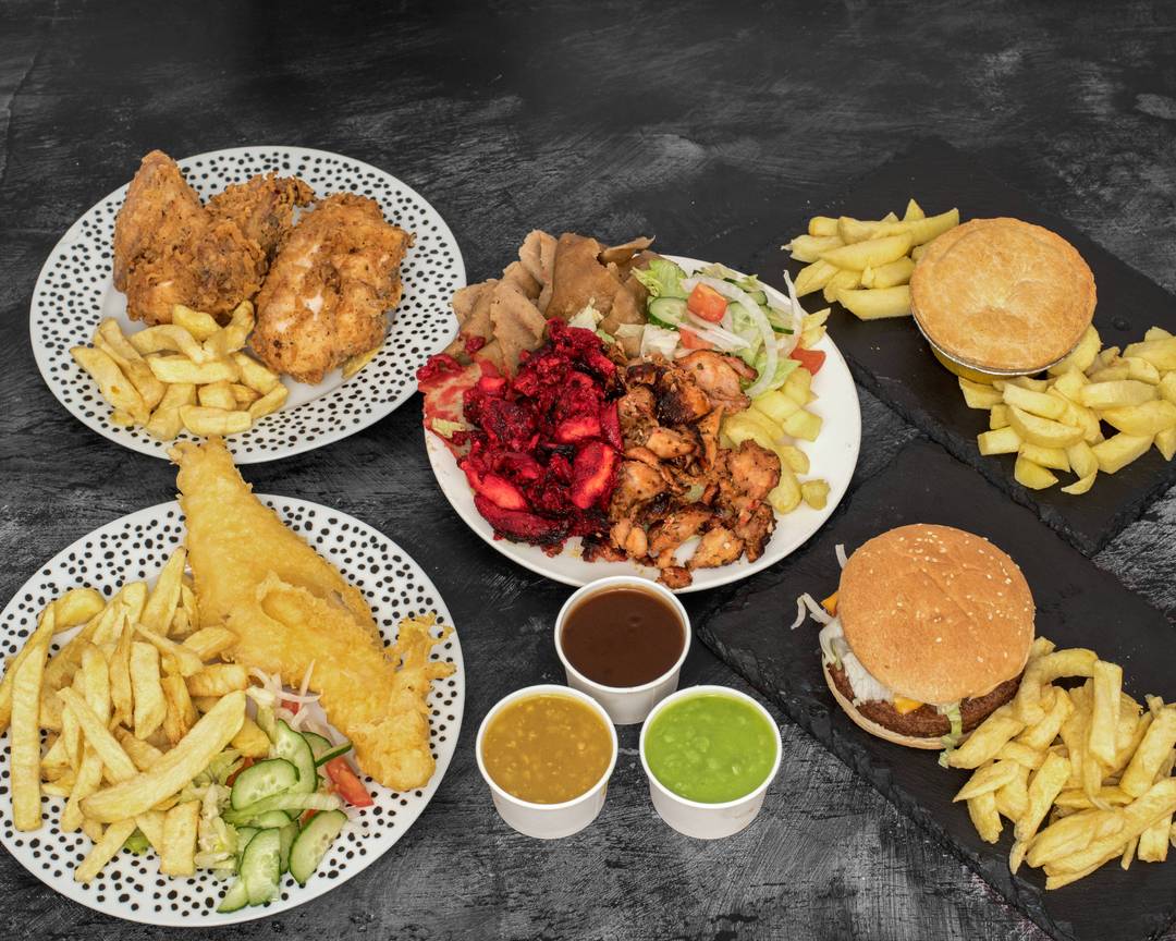 4.3 x (82) • Burgers • Kebab • Fish & Seafood • Fish dishes • and • Chips • $ • Info