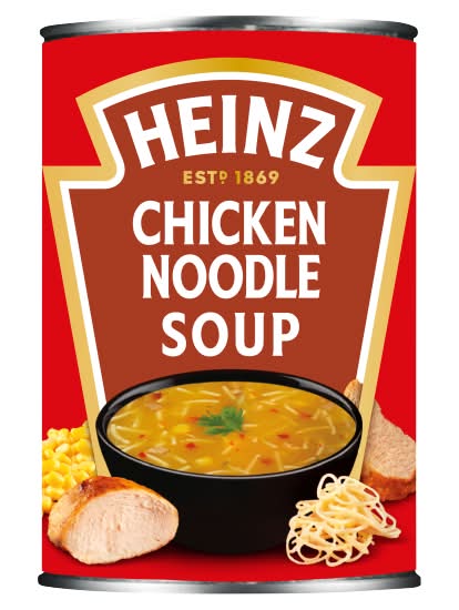 Nothing says home like a deliciously warming bowlful of Heinz soup. Heinz Chicken Noodle Soup has been made to our own special recipe and with a blend of the finest ingredients. Enjoy a delicious meal with Heinz Chicken Noodle Soup. We have crafted a tasty blend of savory chicken, wholesome noodles for those who appreciate no-nonsense flavours that remind them of home. Bursting with rich flavour, it's no wonder that Heinz Soup has earned a special place in our hearts as well as our kitchen cupboards. A can of our Heinz Chicken Noodle Soup is the perfect companion for all occasions as it is convenient and quick to prepare. Whether you're seeking comfort on a chilly winter evening or want a quick and easy meal option during a busy day. Our tinned soup is perfectly paired with a slice of warm crusty bread, topped with croutons or savored on its own. Made with only trusted ingredients, our recipe is low in fat and contains no artificial colours or preservatives. So why not take a moment to embrace the familiar, comforting taste of Heinz Chicken Noodle Soup today? Try the rest of our Classics range, including: Cream of Tomato, Potato & Leek and Vegetable or our Heinz Big Soup range for a hearty filled meal with big-time flavour. After all, it has to be Heinz! • H.J. Heinz Foods Uk Ltd., London, SE1 9SG. • Packaging: Reusable