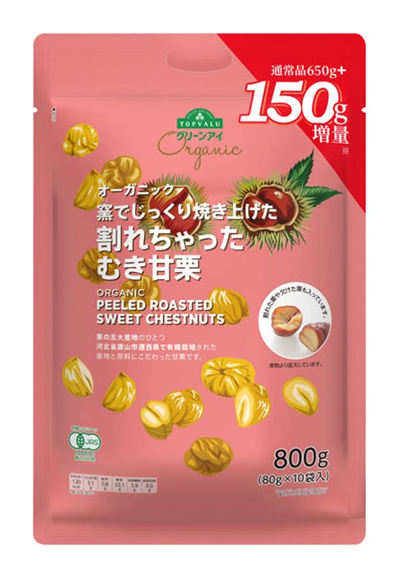 トップバリュ グリーンアイ 窯でじっくり焼き上げた有機割れちゃったむき甘栗 (650g)