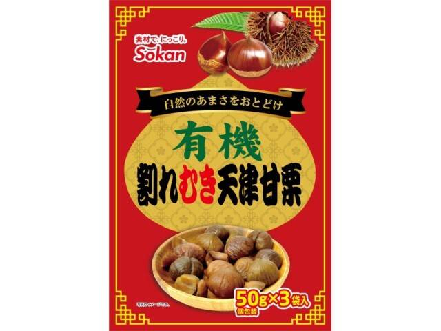 壮関 自然のあまさをおとどけ 有機割れむき天津甘栗 (50g x 3)