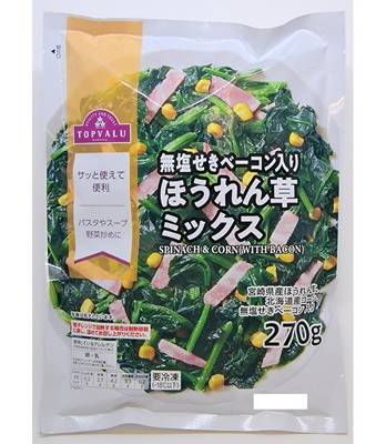 トップバリュ 無塩せきベーコン入り ほうれん草ベーコンミックス (270g)