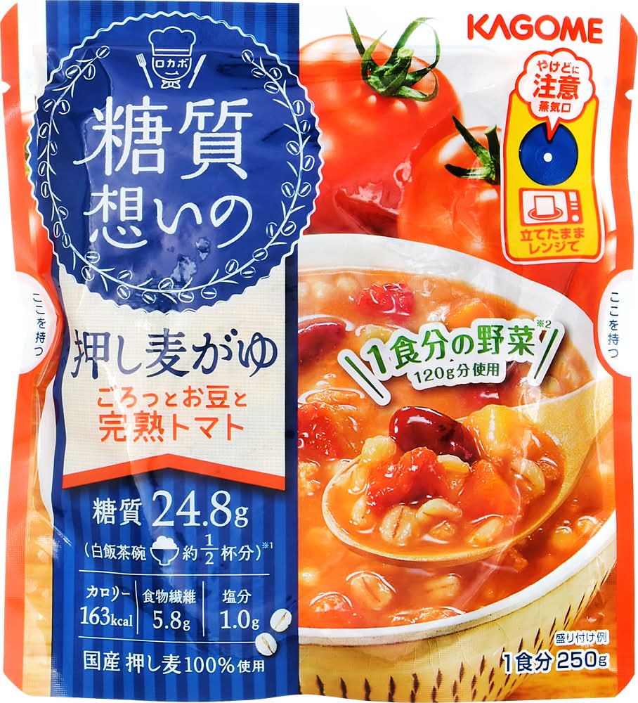 カゴメ 糖質想いの 押し麦がゆ ごろっとお豆と完熟トマト (250g)