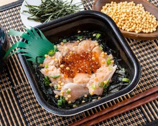 - トッピング20 個までお選びください漬けまぐろブツ+¥390漬けサーモンブツ+¥390漬け黒瀬ぶりブツ+¥490いくら+¥490甘エビ+¥390人気炙りアナゴ(2枚)+¥190生ホタテ(2個)+¥390アボカド+¥190煮アサリ+¥190カニフレーク+¥290イカソーメン+¥190炙りまぐろ(2枚)+¥390炙りサーモン(2枚)+¥390炙りぶり(2枚)+¥490漬け真鯛(2枚)+¥490ムキエビ+¥190カニ味噌+¥290