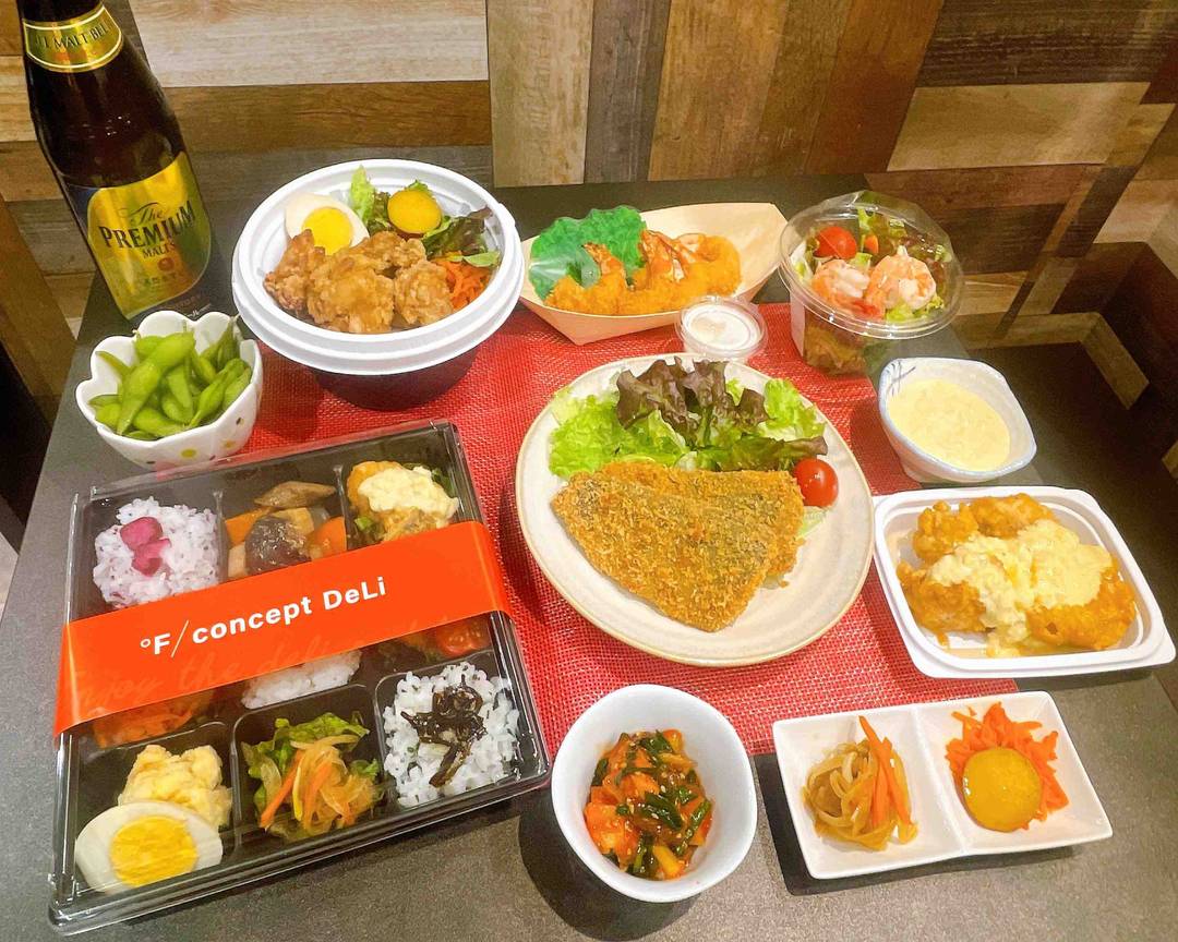 F/CONCEPT Deli エフコンセプトデリは、福岡市に位置する日本食のデリです。お客様に人気のメニューは、チキン南蛮弁当やアジフライ弁当プレミアムなどがあります。夕方が最も注文が多い時間帯です。また、チキン南蛮弁当とお味噌汁が一緒に注文されることが多いです。その他にも、出汁唐揚げや自家製タルタルソースなど、さまざまな単品メニューも提供しています。